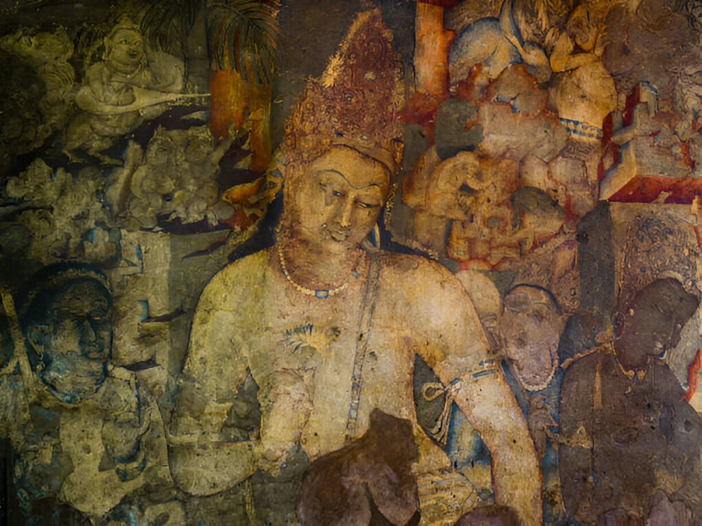 The carved railing from Bodh Gaya, the place of the Buddha’s enlightenment, and the earliest surviving wall paintings are also early Andhra; paintings in the rock-cut cave at Ajanta narrate the Buddha’s birth as an elephant and the entire synopsis of historic life. In the far south, in the Deccan, the later Andhra dynasty continued to flourish into the 1st cent. AD Its greatest monument is the carving at the Great Stupa at Amaravati, c.AD 200.