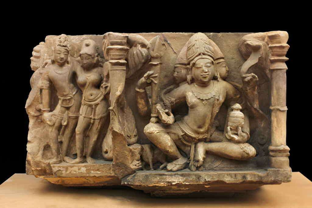 The yakshis have acquired full, graceful forms, and high-relief compositions are frequently conceived in a continuous method of narration.